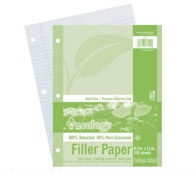There are many eco-friendly types of paper that you can use- recycled paper and tree-free papers such as mango, banana, and sugar cane. These eco-friendly papers come in printing reams, loose leaf paper, and in notebooks and notepads. I was pleasantly surprised to find a brand called GreenRoom at Target that was made out of 60-70% recycled fiber and printed with nontoxic soy-based ink available in many sizes of notebooks and notepads. Purchasing recycled paper products helps keep waste out of landfills, uses less energy and saves some trees! You can find recycled loose leaf paper at schoolspecialty.com